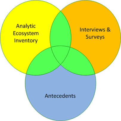 This section provides recommendations on how to evaluate each. However, it is important that the assessment team does not merely examine antecedents and the AEI individually, but rather in the context of the entire information gathered during the overall assessment effort. Figure 1 illustrates the importance of overlapping relationship between surveys/interviews, antecedents, and the inventory of analytic applications.